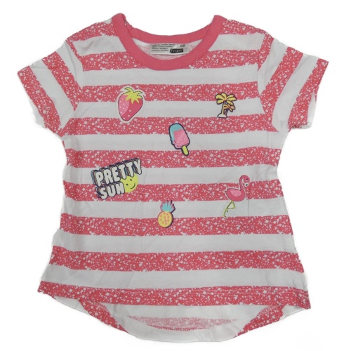 Bielo-ružové pruhované tričko s potlačou Ergee