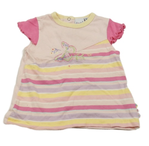 Svetloružová -žltá pruhovaná šatová tunika s motýlkom