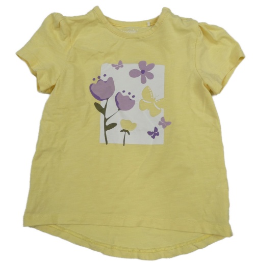 Svetložlté melírované tričko s kvietkami a motýlikmi Topomini