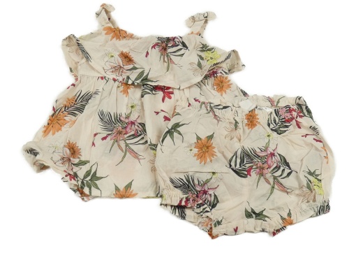 2 set - pudrový kvetovaný ľahký top s volánkem + kraťasy H&M