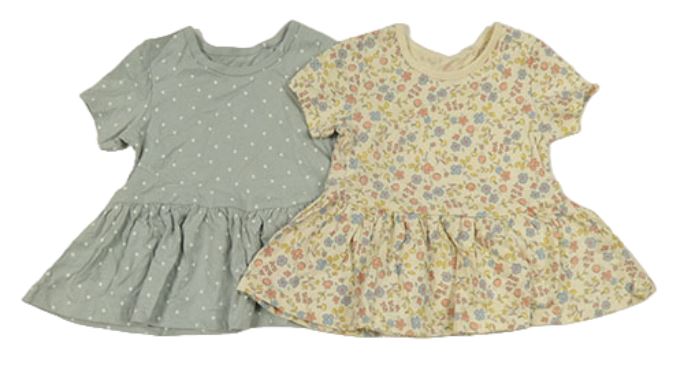 2x - Tunika - Světlešedá puntíkatá, smotanová s kvietkami a muchomůrkami George
