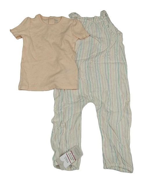 Nové - 2 set - marhuľové rebrované tričko + bielo-farebný pruhovaný ľanový nohavicový overal M&S