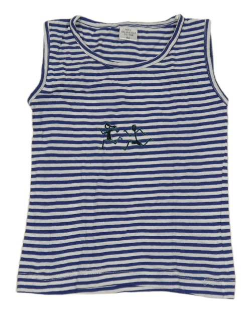 Tmavomodro-biely pruhovaný top s výšivkou