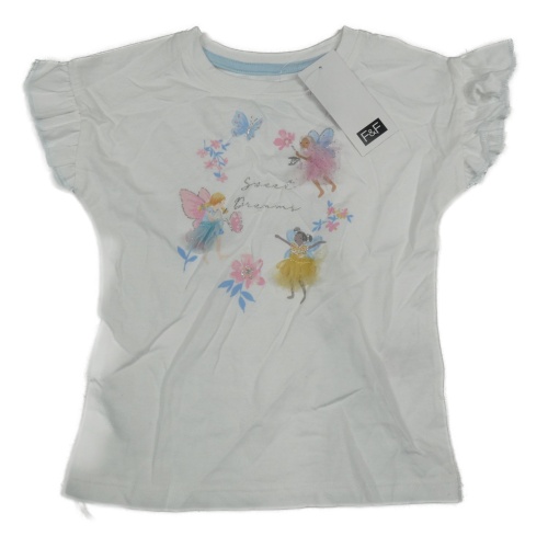 Nové - biele tričko s vílami a motýlkom a volánikmi F&F