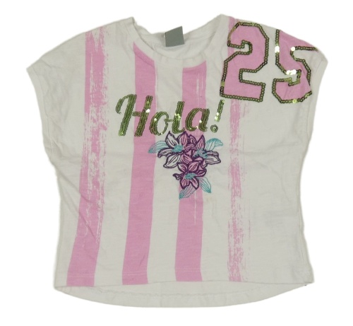 Bielo-ružové pruhované crop tričko s kvetmi a flitrami Kanz