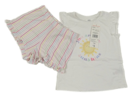Nové - 2set - Biele tričko so sluníčkem + pruhované bavlnené kraťasy F&F