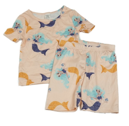 2set - Broskvové tričko s mořskými pannami + legínové kraťasy SHEIN