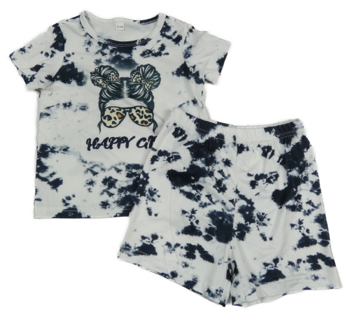 2Set - Bielo-čierne batikované tričko s dívkou a nápisem + kraťasy