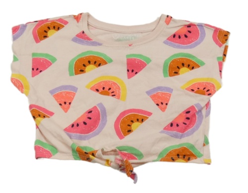 Svetloružové crop tričko s farebnymi melóny a uzlom Primark