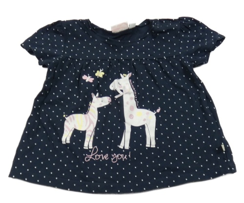 Tmavomodré bodkovaná é tričko so zebrou a žirafou Liegelind