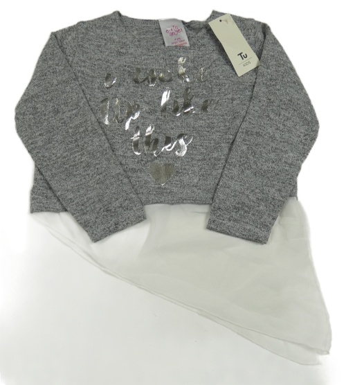 -Nové Sivé úpletové tričko s nápisem z flitrů E-vie angel
