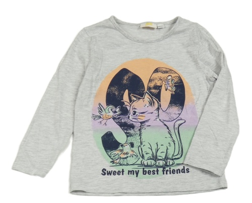 Svetlosivé melírované tričko s koťátkem a vtáčky Kids