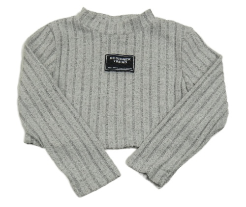 Sivé úpletové rebrované crop tričko s nášivkou Shein
