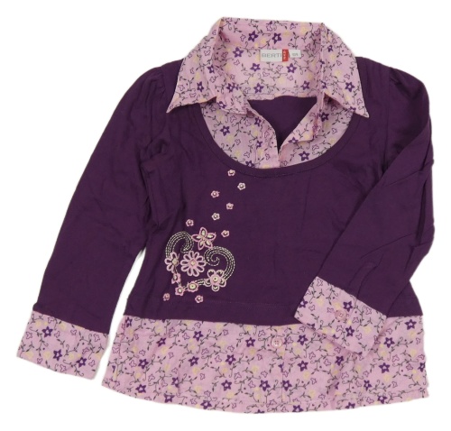 Fialové tričko s růžovou kytičkovanou halenkovou vsadkou a výšivkou Berti