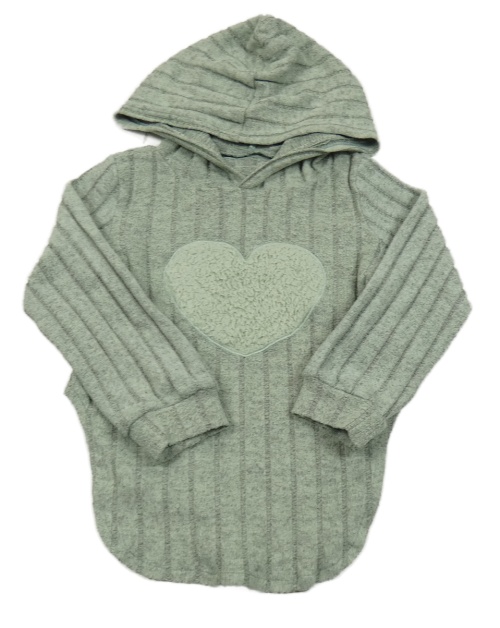 Světlezeleno-čierne melírované úpletové tričko so srdiečkom a kapucňou