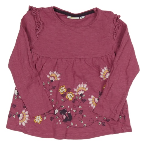 Vínové melírované tričko s kvietkami a liškami a volánikmi Kids