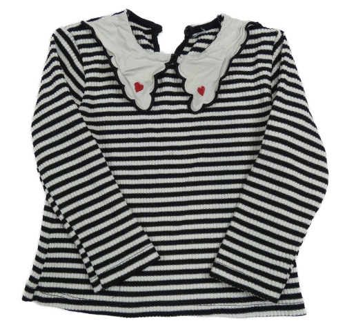 Čierno-biele pruhované rebrované tričko s golierom