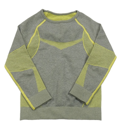 Sivo-žlté melírované thermo tričko s pruhmi a vzorom lupilu