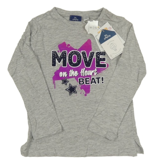 Nové - Sivé melírované tričko s hviezdami a nápisom s kamienkami Chicco