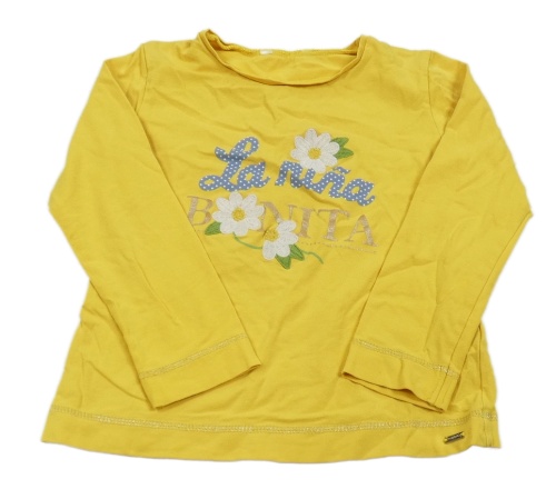 Žlté tričko s nápisom a kvetmi