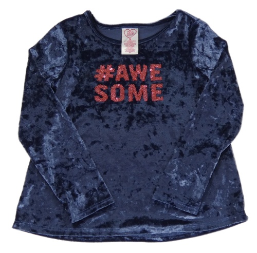 Tmavomodré zamatové tričko s nápisem z flitrů