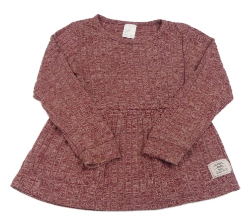 Vínové melírované rebrované úpletové tričko s nášivkou