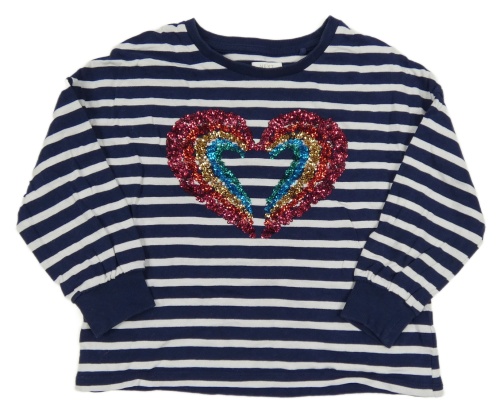 Tmavomodro-biele pruhované tričko so srdcem z flitrů Next