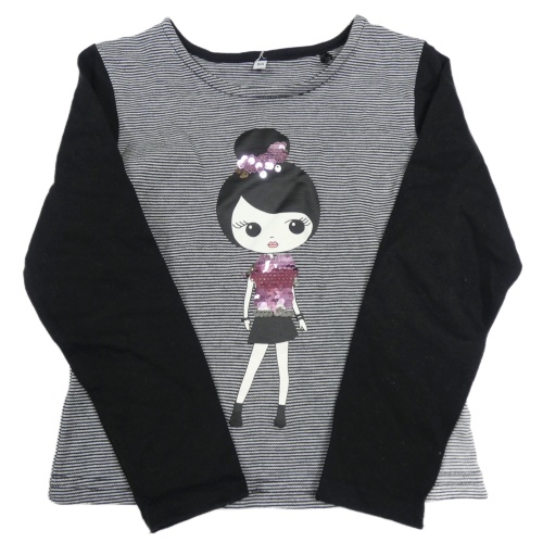 Čierno-biele pruhované tričko s dívkou s flitrami