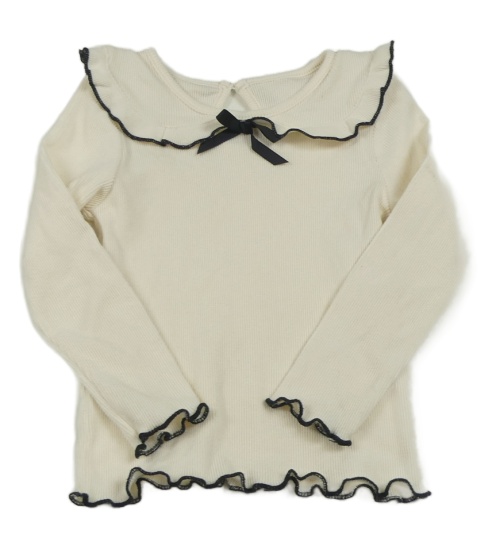 Smotanové rebrované tričko s golierikom a mašlou