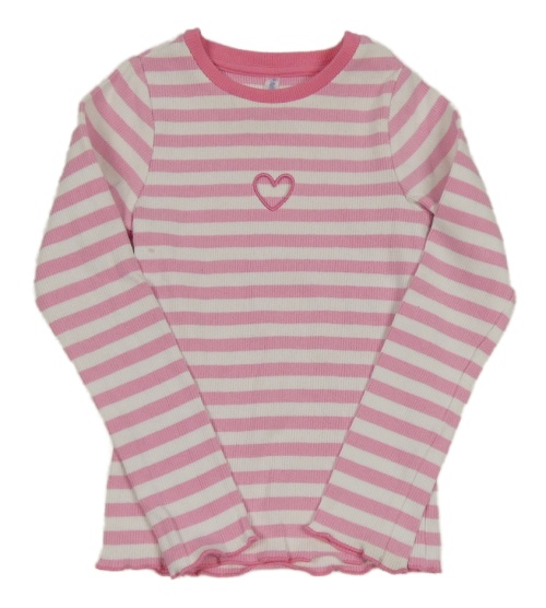 Ružovo-biele pruhované rebrované tričko s perforovaným srdcem