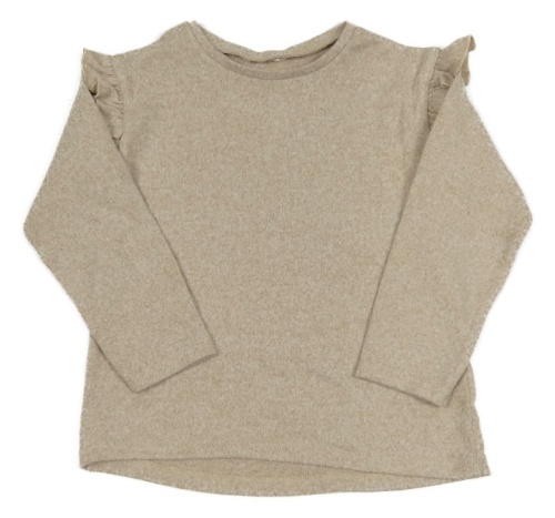 Béžové melírované úpletové tričko s volánikmi