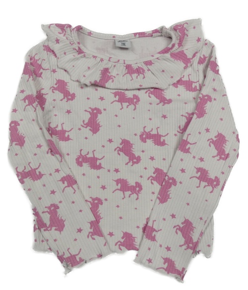 Bielo-ružové rebrované tričko s jednorožcami a volánikom Kiki&Koko