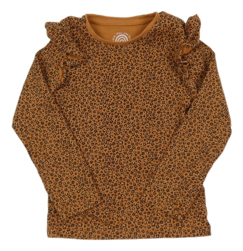 Medové kvietkovane rebrované tričko s volánikmi F&F
