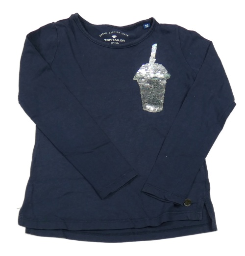 Tmavomodré tričko s obrázkem z překlápěcích flitrů Tom Tailor