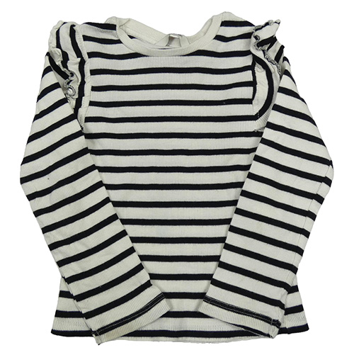 Smetanovo-čierne pruhované rebrované tričko s volánikmi George
