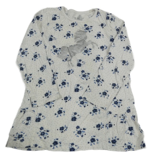 Biela bodkovaná á tunika s kvetinami a jednorožcom Topolino