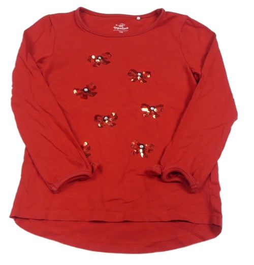 Červené tričko s mašlemi z flitrů a korálkami Topolino
