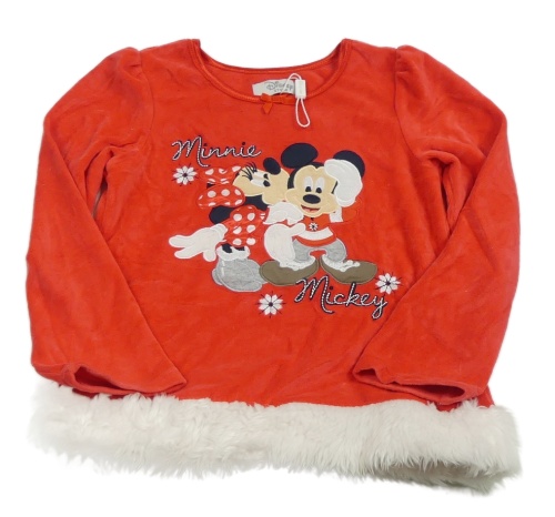 Nové - Červené zamatové tričko s Mickeym, Minnie a kožešinou Disney