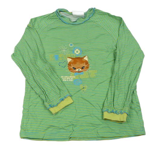 Azurovo-svetlozelené pruhované tričko s mačičkou a kamienkami RINGELLA