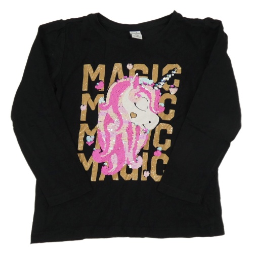 Čierne tričko s jednorožcom s překlápěcími flitre Dopodopo