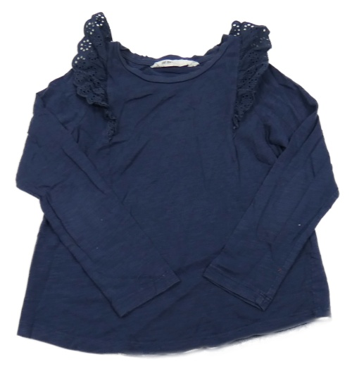 Tmavomodré melírované tričko s volániky s madeirou H&M