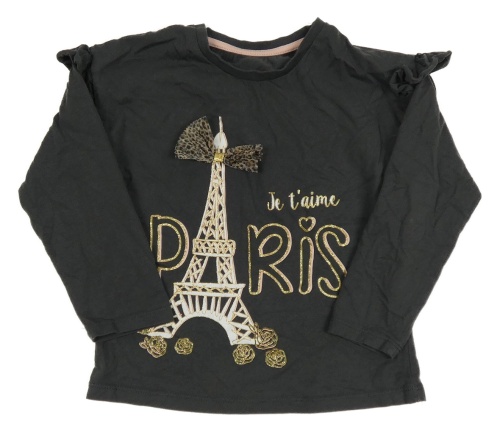 Tmavosivé tričko s Eiffelovou věží a nápismi a volánikmi Matalan