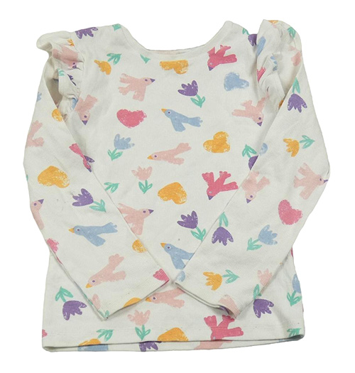 Biele rebrované tričko s vtáčky a volánikmi F&F