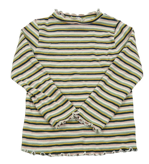 Zeleno-ružovo-smotanové pruhované rebrované tričko Topolino