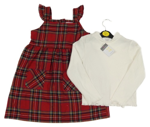 Nové - 2set - Biele rebrované crop triko + červeno-čierno-tmavomodré kockované šaty Primark