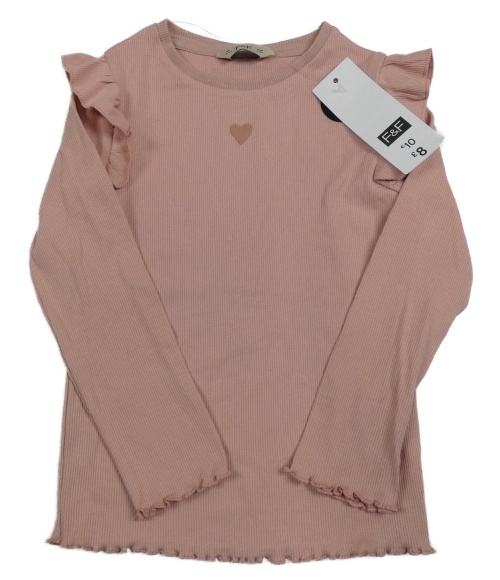 Nové -Svetloružové rebrované tričko s volánikmi a srdiečkom F&F