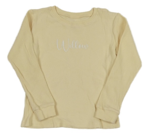 Světložluté rebrované tričko s nápisom