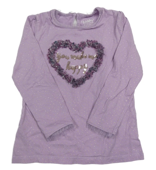Levandulové bodkovaná é tričko so srdiečkom s nápisy z flitrů a volánikmi C&A