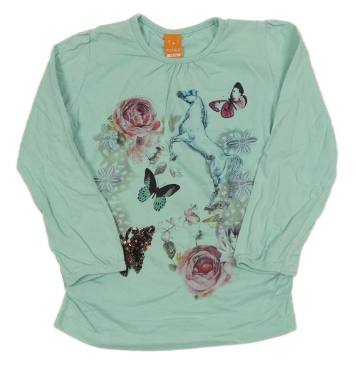 Tyrkysové tričko s motýly s flitrami a koněm Pusblu