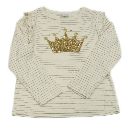 Smetanovo-zlaté pruhované tričko s korunkou z flitrů Tu